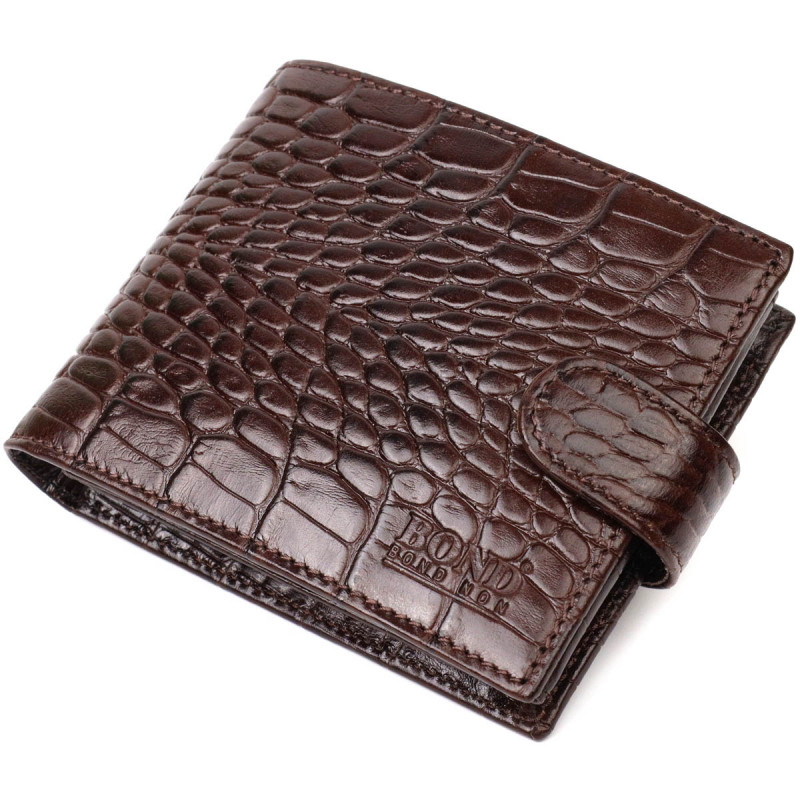 Фактурний чоловічий горизонтальний гаманець із натуральної шкіри з тисненням під крокодила BOND Коричневий
