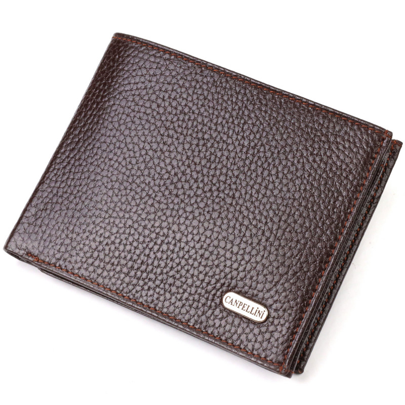 Ідеальний горизонтальний чоловічий гаманець середнього розміру із натуральної зернистої шкіри CANPELLINI Коричневий