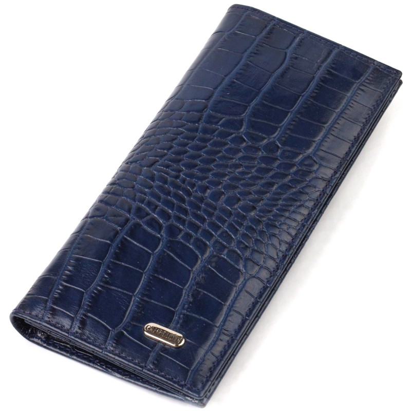 Красивий чоловічий вертикальний гаманець із натуральної шкіри з тисненням під крокодила CANPELLINI Синій