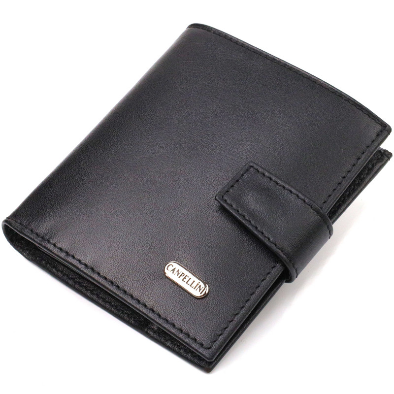 Модний чоловічий гаманець з натуральної гладкої шкіри CANPELLINI Чорний