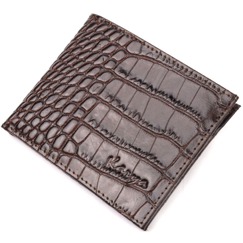 Практичний чоловічий затиск із фактурної шкіри під рептилію KARYA Коричневий