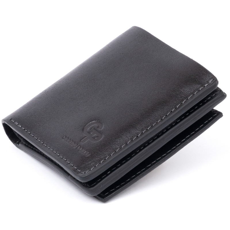 Вертикальне глянсове портмоне з накладною монетницьою GRANDE PELLE Чорне