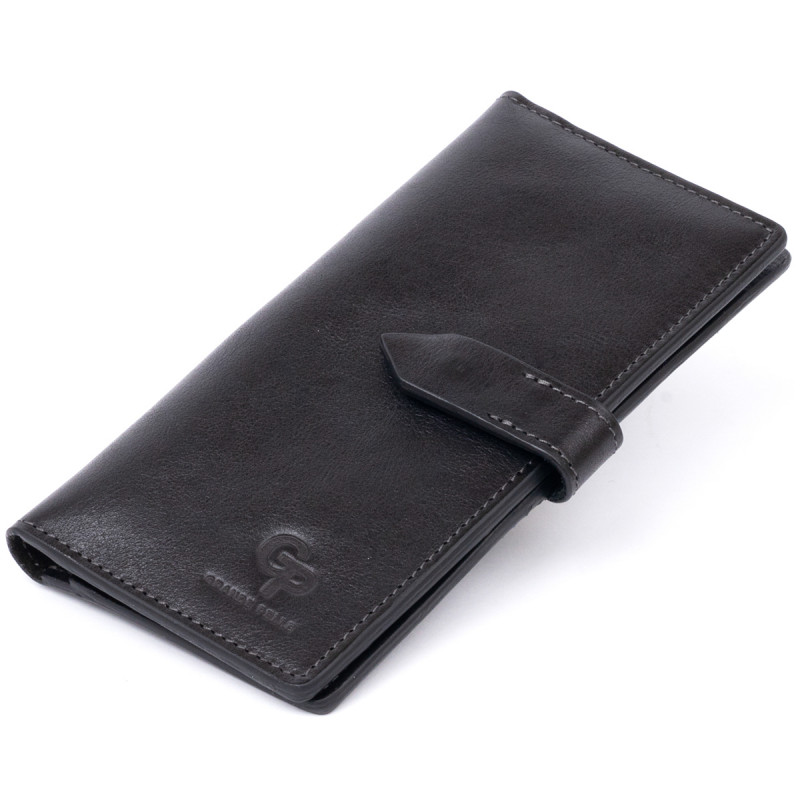 Вертикальний гаманець глянсовий Anet на кнопці GRANDE PELLE Чорний