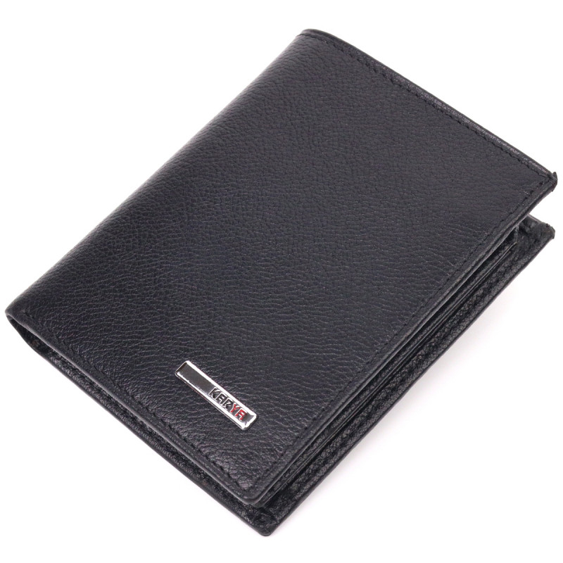 Відмінне портмоне із зернистої натуральної шкіри у сучасному дизайні та трендовому чорному кольорі. Такий аксесуар оцінять любителі натуральних та якісних речей, виріб виконаний з натуральної шкіри високої якості. Портмоне має містке відділення для купюр, слоти для пластикових карток та монетницю. Цей аксесуар чудово підійде як подарунок і принесе виняткову радість близькій людині.