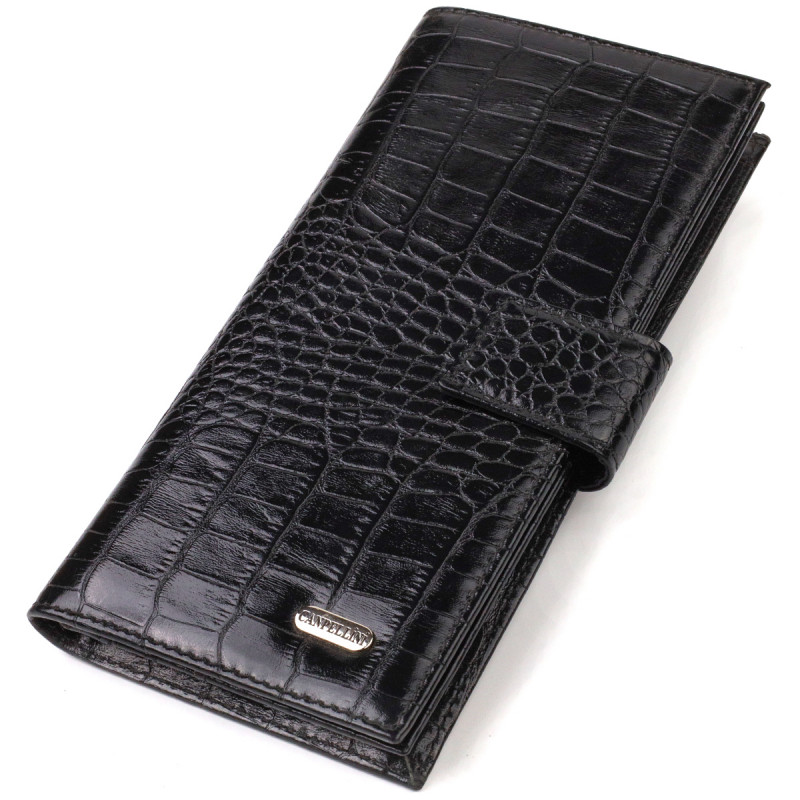 Вузький гаманець для чоловіків з натуральної шкіри з тисненням під крокодила CANPELLINI Чорний
