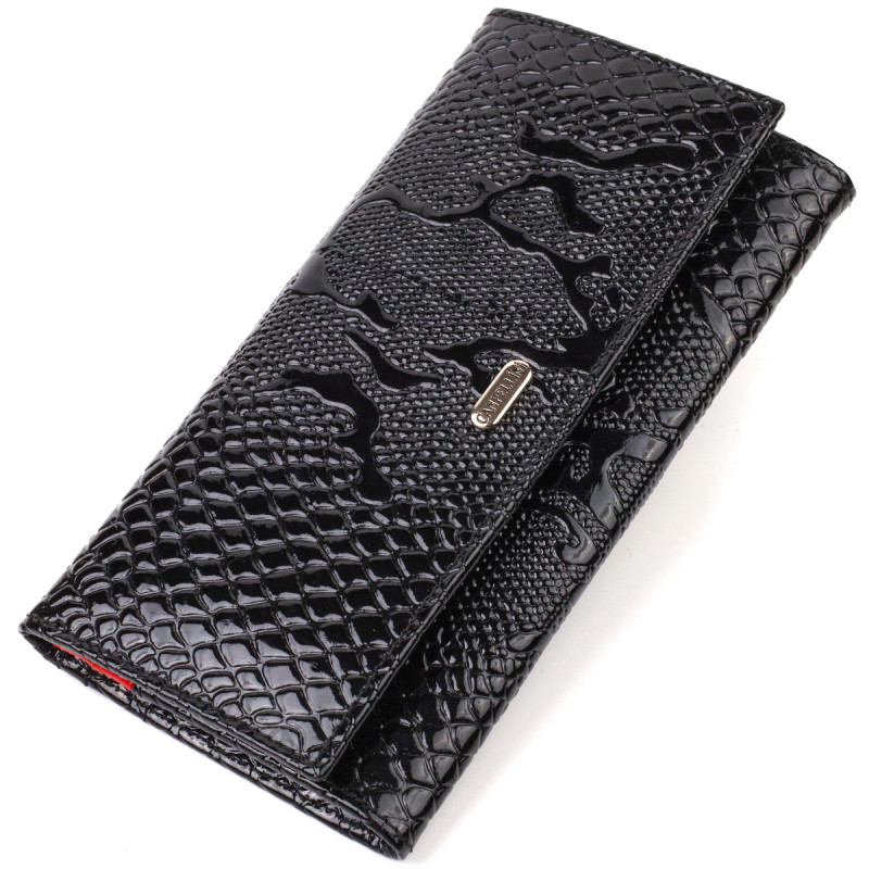 Елегантний лакований гаманець для жінок із натуральної фактурної шкіри з тисненням під рептилію CANPELLINI Чорний