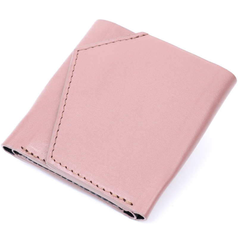 Гарний компактний гаманець із натуральної шкіри GRANDE PELLE Пудровий