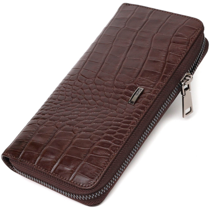 Практичний жіночий гаманець із натуральної шкіри з тисненням під крокодила BOND Коричневий