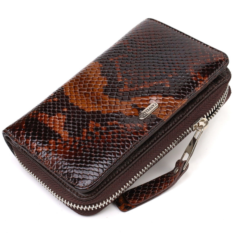 Відмінне лаковане жіноче портмоне середнього розміру з натуральної шкіри з тисненням під змію CANPELLINI Різнокольорове