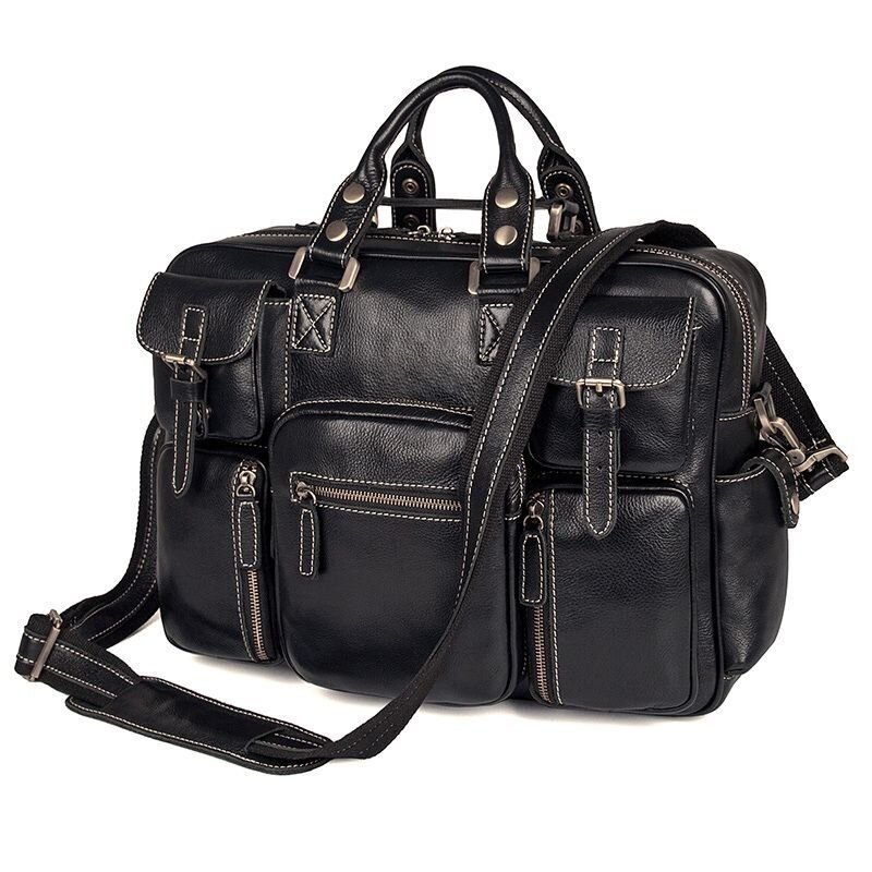 Багатофункціональна чоловіча шкіряна сумка з натуральної високоякісної шкіри. Аксесуар прошитий міцною ниткою білого кольору. Колір фурнітури: мідь. Сумка виглядає дуже стильно і красиво. Вона має безліч кишень і відділень, що надзвичайно важливо для сучасної людини. Носити сумку можна за допомогою зручних шкіряних ручок в руці, а також через плече за допомогою плечового ременя. Завдяки своїй високій якості носитися сумка буде довго і при цьому збереже свій презентабельний зовнішній вигляд.
