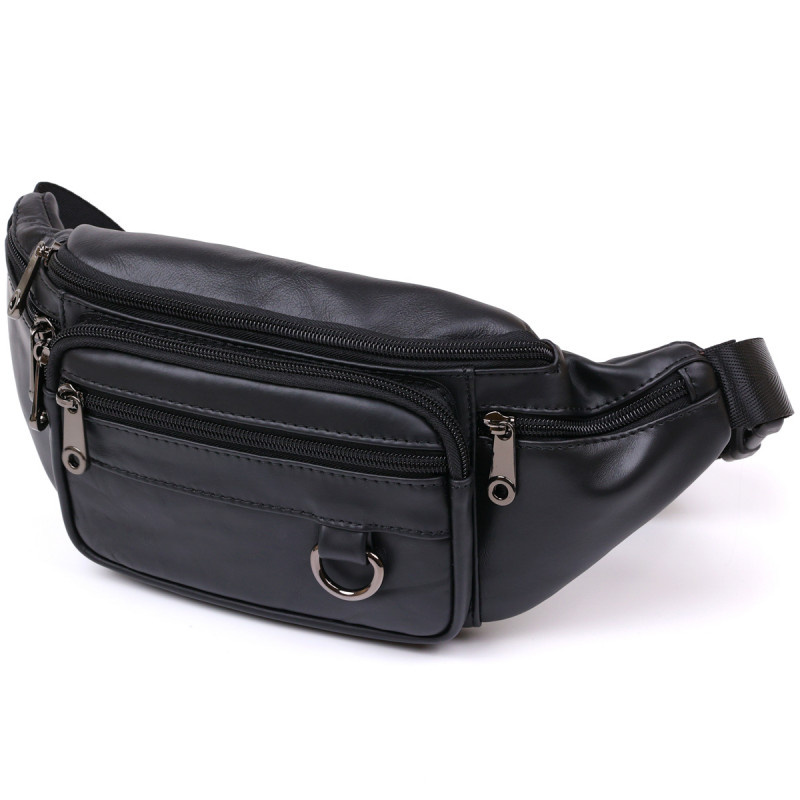 Містка чоловіча сумка на пояс із натуральної шкіри високої якості виконання. Має просторе основне відділення та п'ять зовнішніх кишень різного розміру, що дуже зручно та практично. Колір цієї моделі - універсальний чорний, тому носити її можна під будь-який одяг. Ремінь виконаний із міцного текстилю. Така сумка стане гарним подарунком для близької людини.
