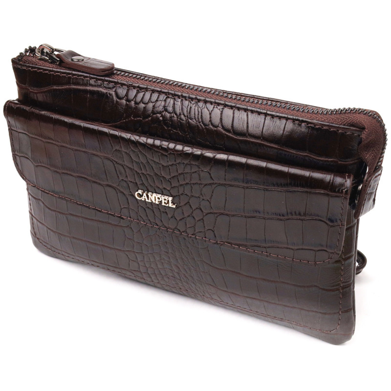 Елегантний клатч для чоловіків із натуральної фактурної шкіри CANPELLINI Коричневий
