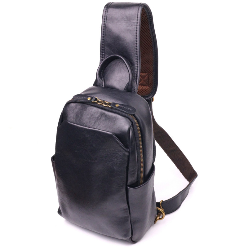 Надзвичайна сумка чоловіча через плече із натуральної гладкої шкіри Vintage Чорна