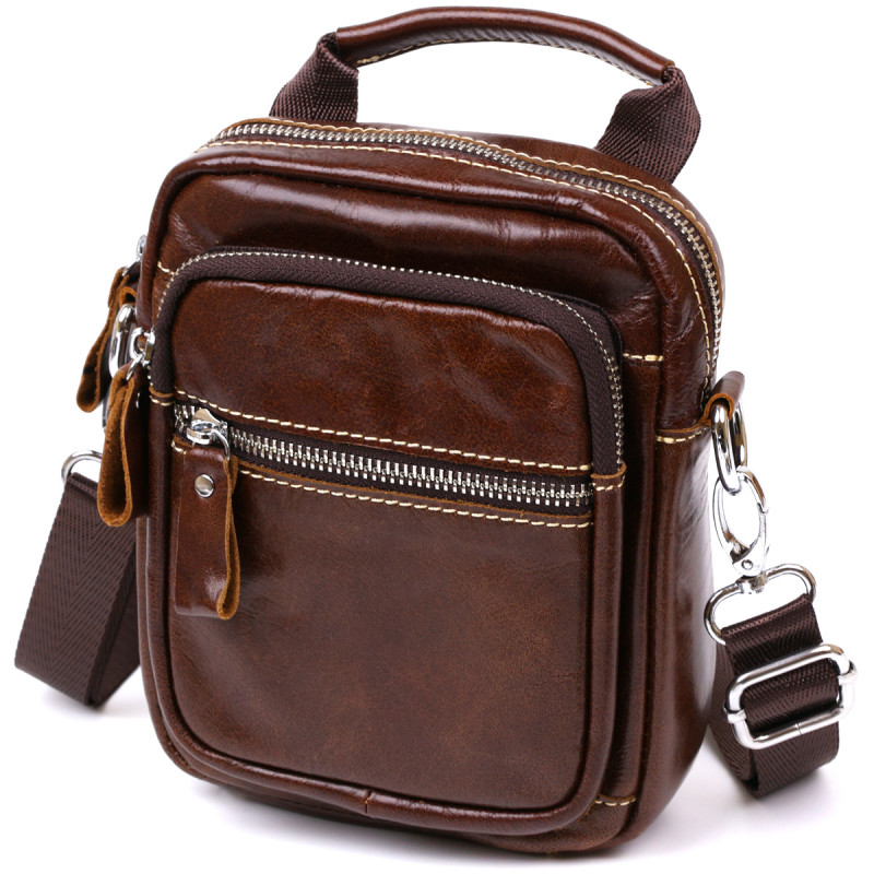 Невелика чоловіча сумка із натуральної шкіри Vintage Коричневий