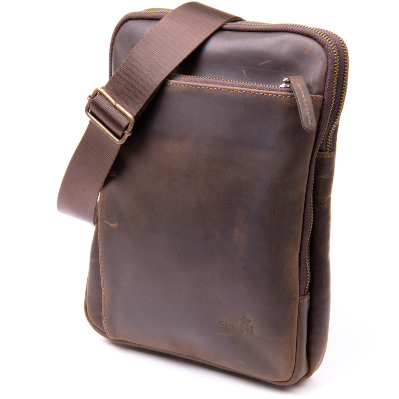 Нова модель з оригінальним дизайном в улюбленій матовій шкірі. Вантажний тип шкіри став найпопулярнішим серед наших клієнтів. Сумка ідеально підійде для роботи і навчання. Вміщує в себе планшет. У моделі зручно буде носити ваші особисті речі, необхідні на кожен день. Сумка виглядає дуже солідно і тримає форму. Надійна фурнітура підкреслює високу якість пошиття моделі. З такою сумкою вам буде складно залишитися непоміченим. Впевнені, що ви оціните і полюбите нашу новинку від українського бренду Shvigel. Вінтажна сумка - ідеальний подарунок для найстильніших чоловіків.