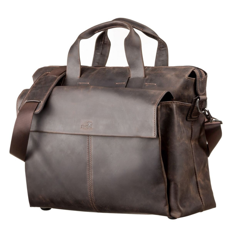 Велика чоловіча сумка SHVIGEL шкіряна Коричнева
