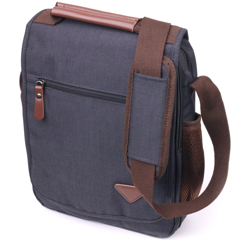 Вертикальна чоловіча сумка через плече текстильна Vintage Чорна