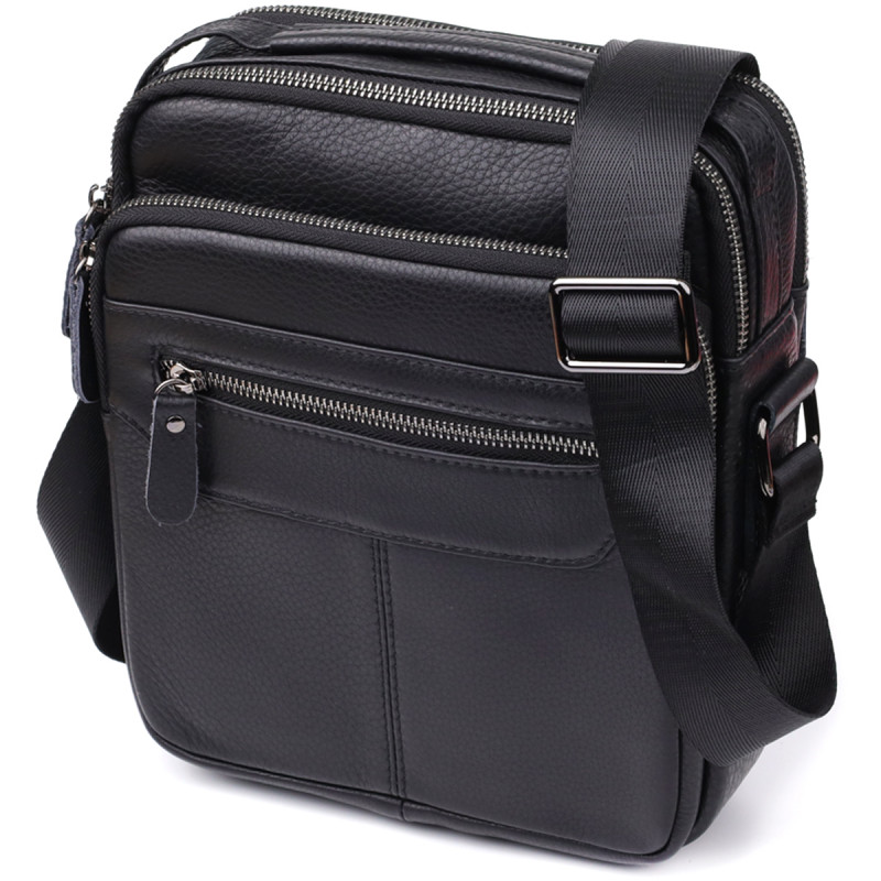 Вертикальна чоловіча сумка з натуральної шкіри Vintage Чорний