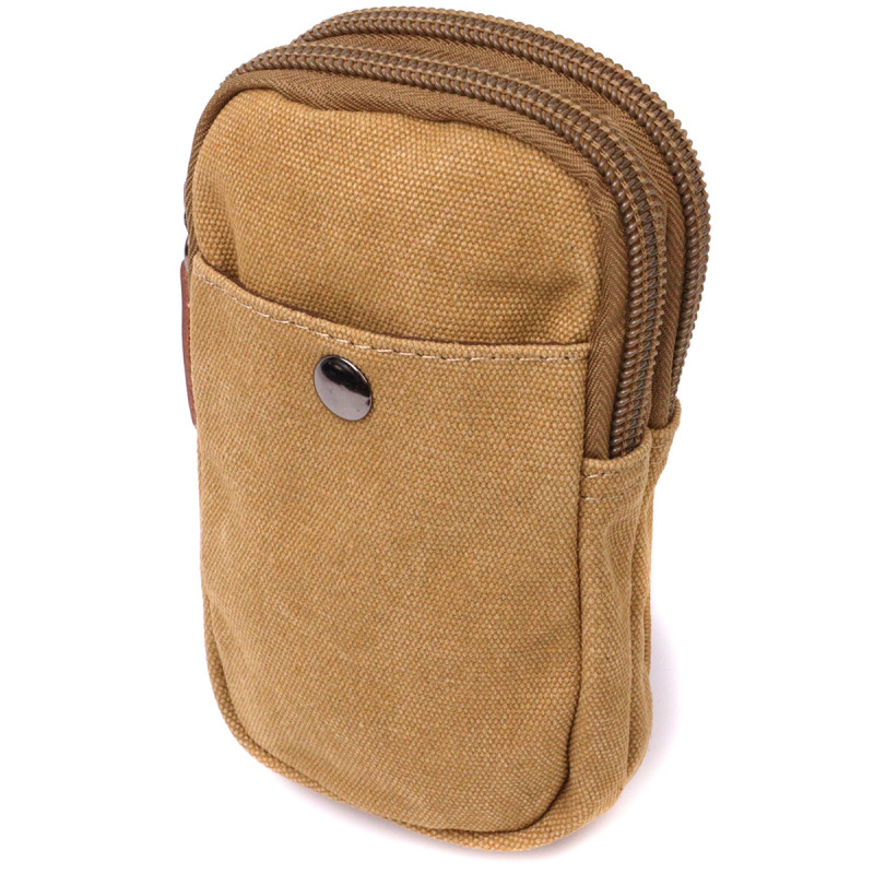 Вертикальна сумка-чохол на пояс із металевим карабіном із текстилю Vintage Пісочний