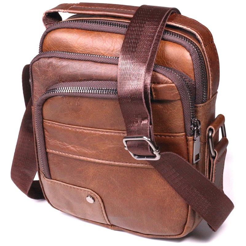 Зручна чоловіча сумка через плече з натуральної шкіри Vintage Світло-коричневий