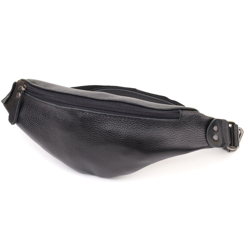 Зручна сумка бананка для чоловіків із зернистої натуральної шкіри Shvigel Чорний
