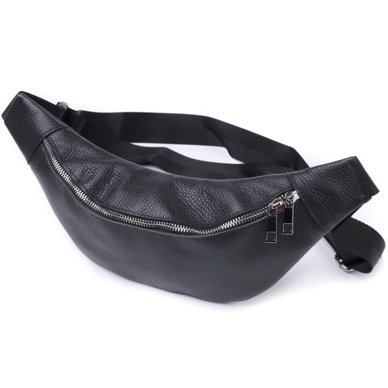 Зручна сумка-бананка унісекс з натуральної шкіри Shvigel Чорна