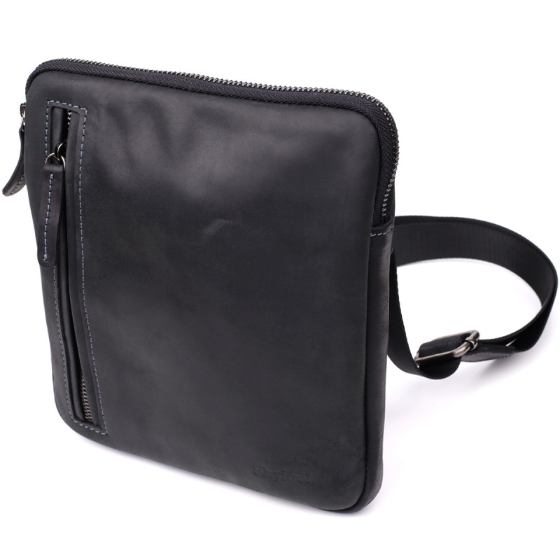 Зручна сумка для чоловіків на плече із натуральної вінтажної шкіри Shvigel Чорний