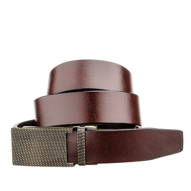 Коричневий, класичний ремінець з автоматичною пряжкою кольору латуні з зернистою висічкою на металі. Пряжка виготовлена з якісного сплаву і виглядає дуже дорого і оригінально. Ремінь підійде для вас, якщо ви в пошуках солідної моделі, яка підкреслить ваш статус в суспільстві і почуття стилю. Щільна шкіра, витриманий дизайн в поєднанні з міцною пряжкою роблять модель особливо привабливою. Підбирайте подарункову упаковку і придбайте даний ремінь на подарунок для вашого чоловіка. Впевнені, що такий подарунок принесе тільки позитивні емоції.