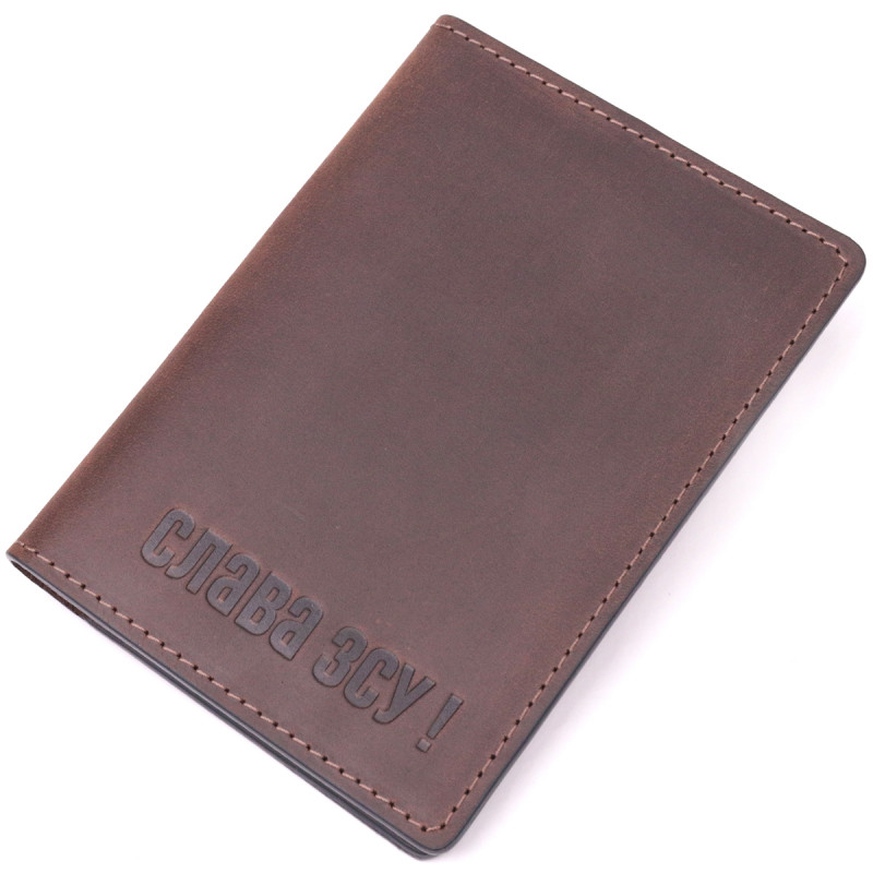 Добротная обложка на военный билет из винтажной кожи Слава ЗСУ GRANDE PELLE Коричневая