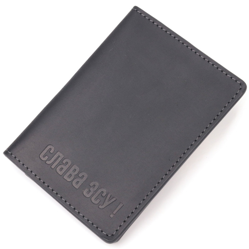 Обложка из винтажной кожи на военный билет Слава ЗСУ GRANDE PELLE Черная