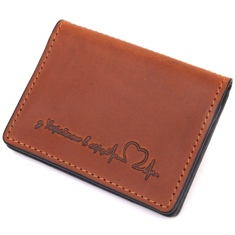 Качественная обложка для авто документов, с патриотической надписью “З Україною в серці”. Изделие пошито с итальянской качественной кожи.По краям модель прошита коричневой строчкой в дизайн изделия. Изделие небольшого размера и с легкостью поместится в карман или маленькую сумку. В комплекте к изделию идет фирменный фетровый чехол. Изделия из кожи всегда считались отличным подарком, не зависимо от пола и возраста.