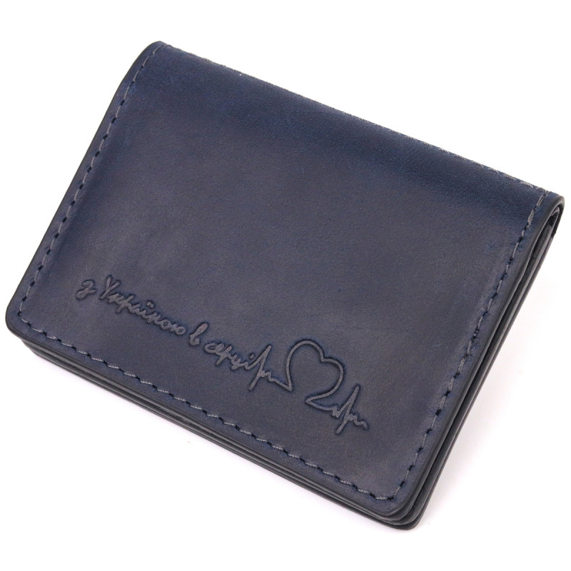 Практичная обложка на автодокументы в винтажной коже Сердце GRANDE PELLE Синий