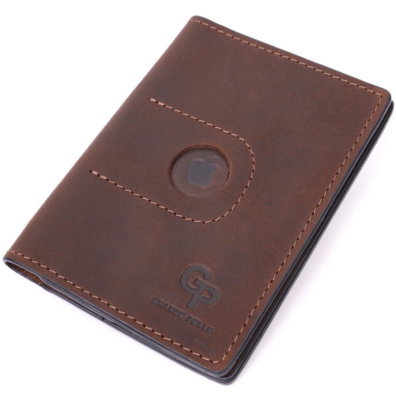 Стильная кожаная обложка на паспорт с держателем для Apple AirTag GRANDE PELLE Коричневый