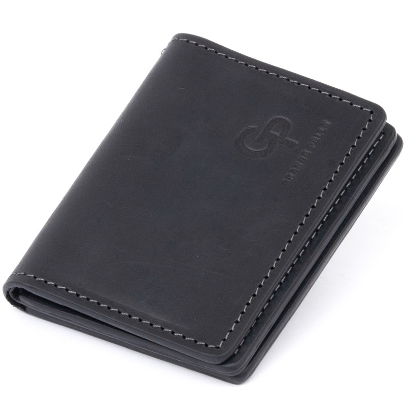 Визитница с обложкой для ID-паспорта из натуральной кожи GRANDE PELLE Черная