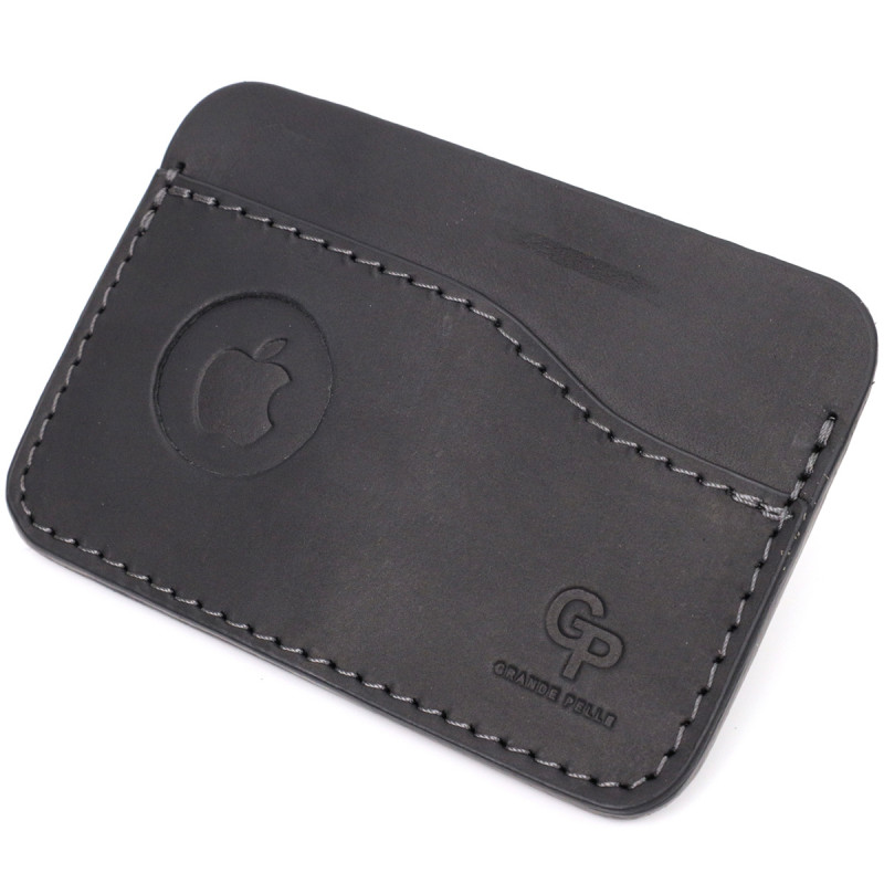 Горизонтальный картхолдер с держателем для Apple AirTag из натуральной кожи GRANDE PELLE Черный