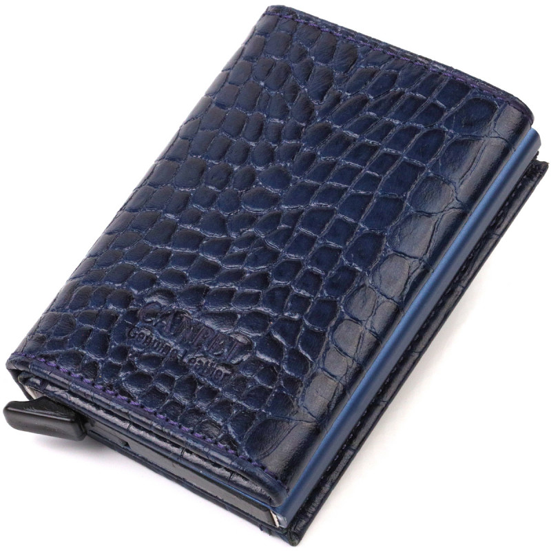 Картхолдер для мужчин в три сложения с автоматическим механизмом из натуральной кожи с тиснением под крокодила CANPELLINI Синий