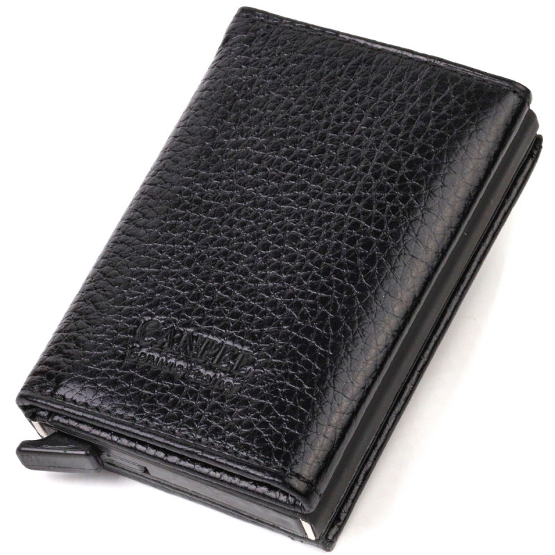 Картхолдер унисекс в три сложения с автоматическим механизмом из натуральной кожи флотар CANPELLINI Черный