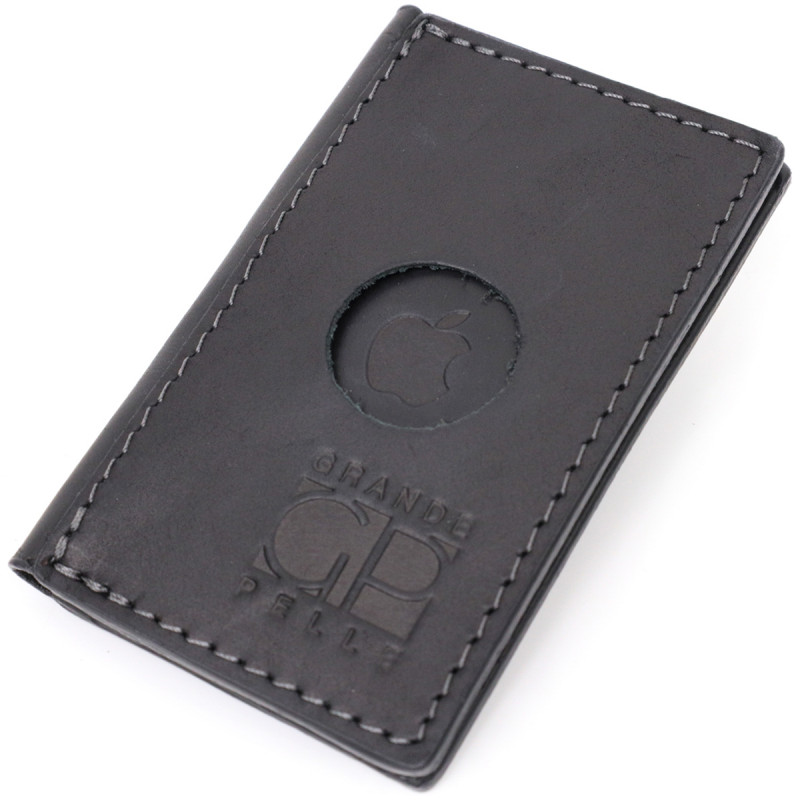 Надежный картхолдер с держателем для Apple AirTag из натуральной кожи GRANDE PELLE Черный