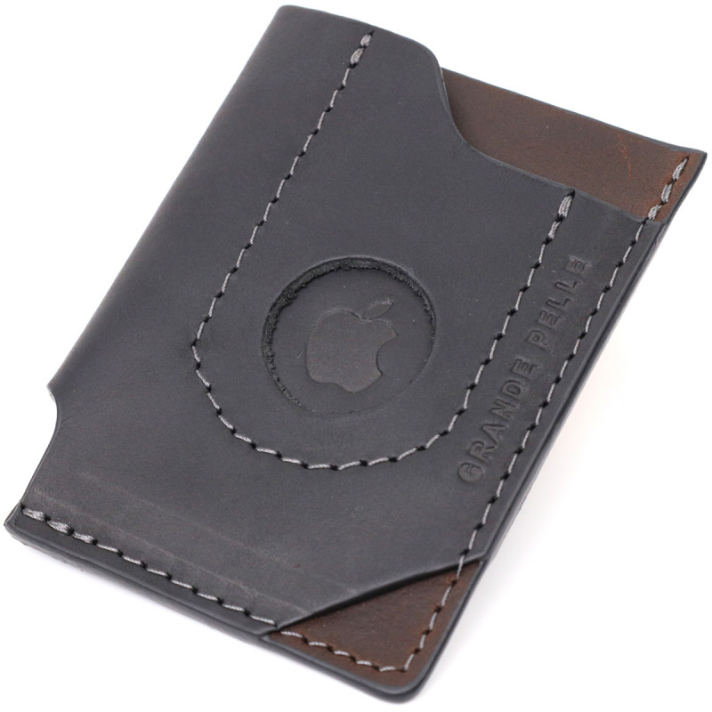 Интересный картхолдер с держателем для Apple AirTag из натуральной кожи GRANDE PELLE Черный