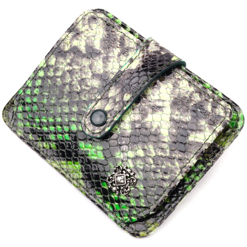 Визитница из натуральной фактурной кожи под змею KARYA Зеленый