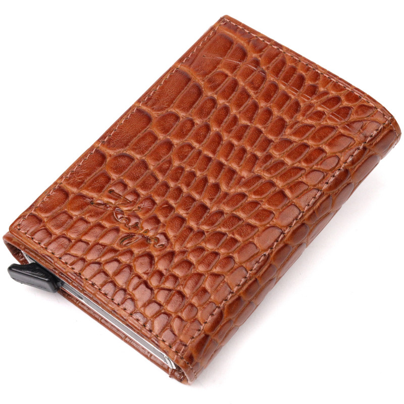 Визитница из натуральной фактурной кожи под крокодила KARYA Коричневый
