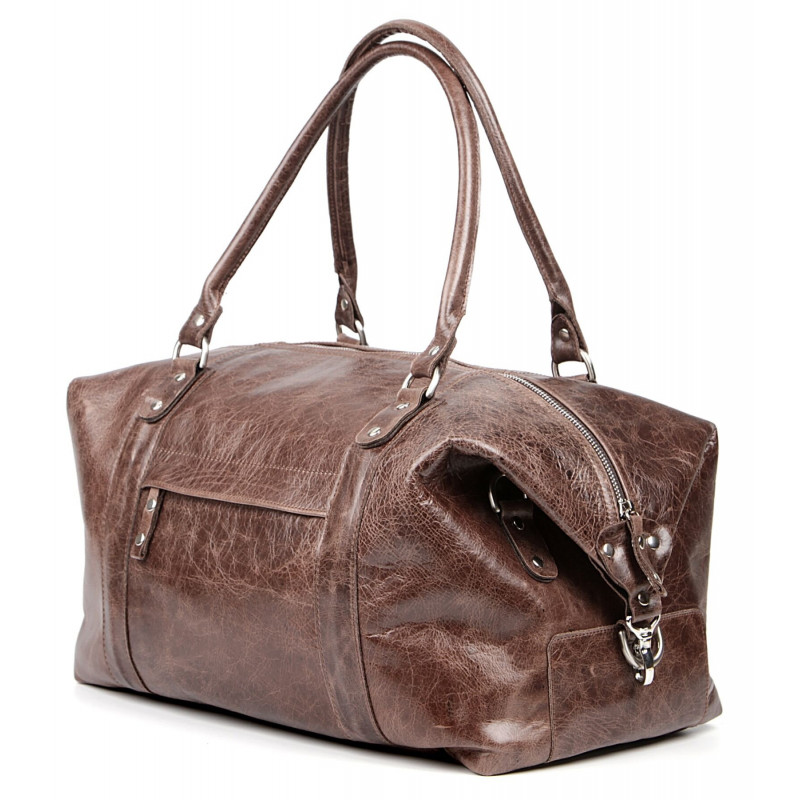 Отличная, вместительная спортивно-дорожная сумка. Аксессуар изготовлен из высококачественной натуральной кожи с винтажной фактурой. Цвет фурнитуры: серебро. Переносить такой аксессуар можно на плече (в комплекте съемный плечевой ремень), а также в руке при помощи 2-х удобных кожаных ручек.