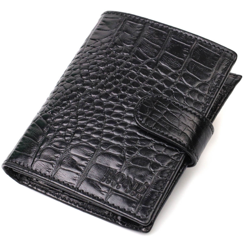 Мужской фактурный вертикальный кошелек из натуральной кожи с тиснением под крокодила BOND Черный