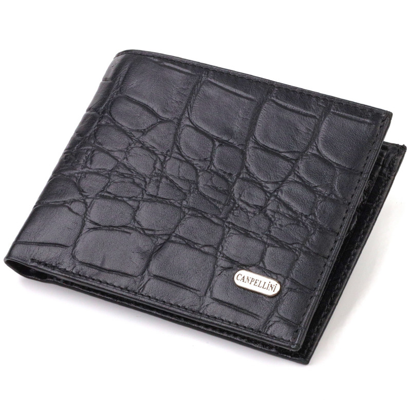 Мужской бумажник без застежки горизонтального формата из натуральной кожи с тиснением под крокодила CANPELLINI Черный