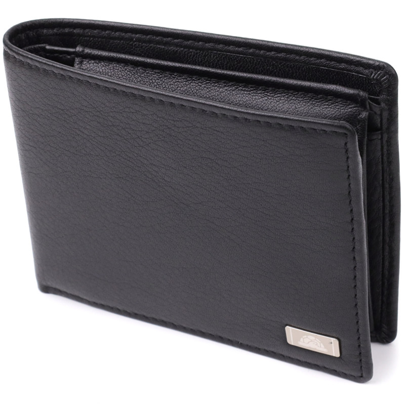 Кошелек выполнен из первоклассной итальянской натуральной кожи, отличается мягкостью и долговечностью. Внутри предусмотрены четыре ячейки для карт, два прилегающих кармана, монетница на кнопке и два отделения для купюр. На лицевой стороне в нижнем правом углу расположен металлический логотип бренда, подчеркивающий статус и подлинность изделия. Дизайн без застежки делает модель лаконичной и удобной в использовании.