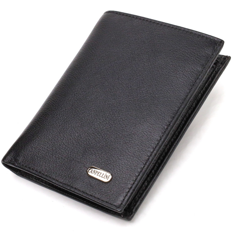 Мужской вместительный кошелек вертикального формата из натуральной кожи CANPELLINI Черный