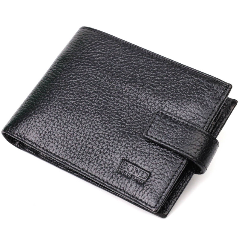 Мужской горизонтальный кошелек из натуральной кожи BOND Черный