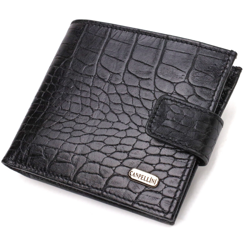 Мужской оригинальный бумажник горизонтального формата из натуральной кожи с тиснением под крокодила CANPELLINI Черный
