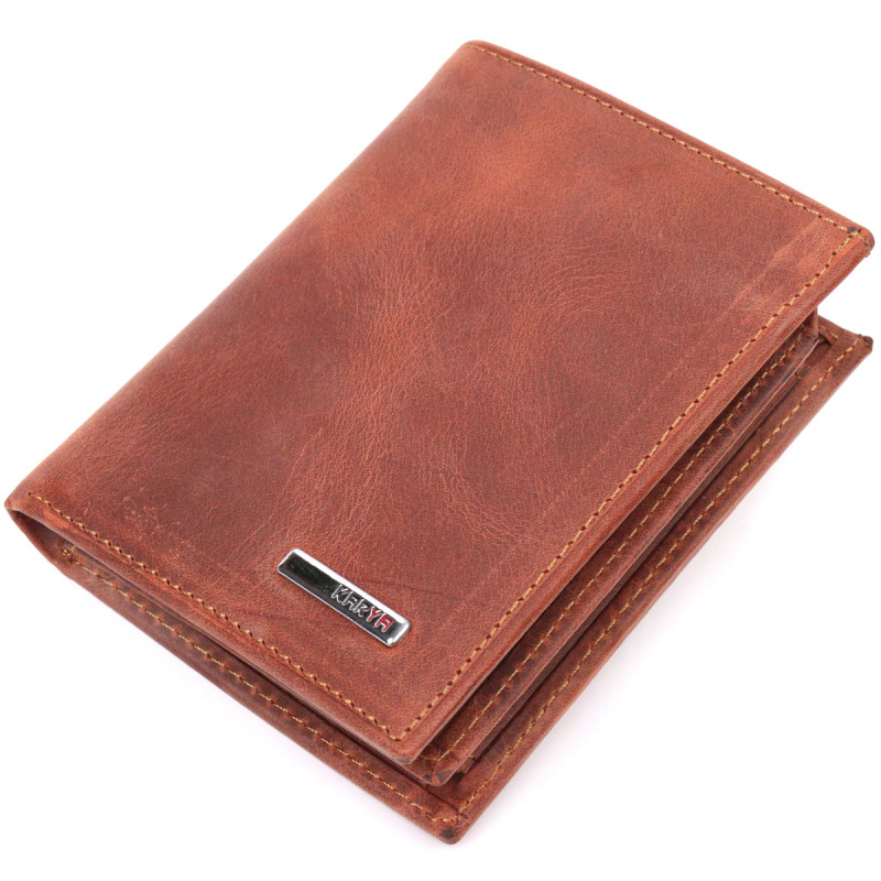 Мужское вертикальное портмоне без застежки в винтажной коже KARYA Рыжий