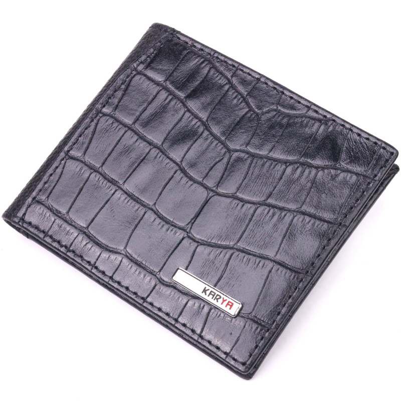 Мужской зажим с монетницей из натуральной кожи с тиснением под крокодила KARYA Черный